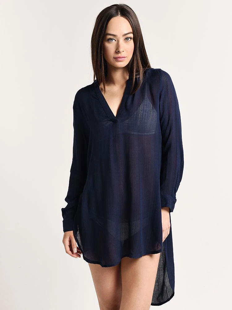 FEATURES:33 1/2 front length; 38 1/2 back length (size Medium)V-neckLong sleeves100% viscoseHand wash, line dryImportedStyled with Seafolly Top Style # LSCYT9P. Model is wearing size small top and Bottom and Coverup.