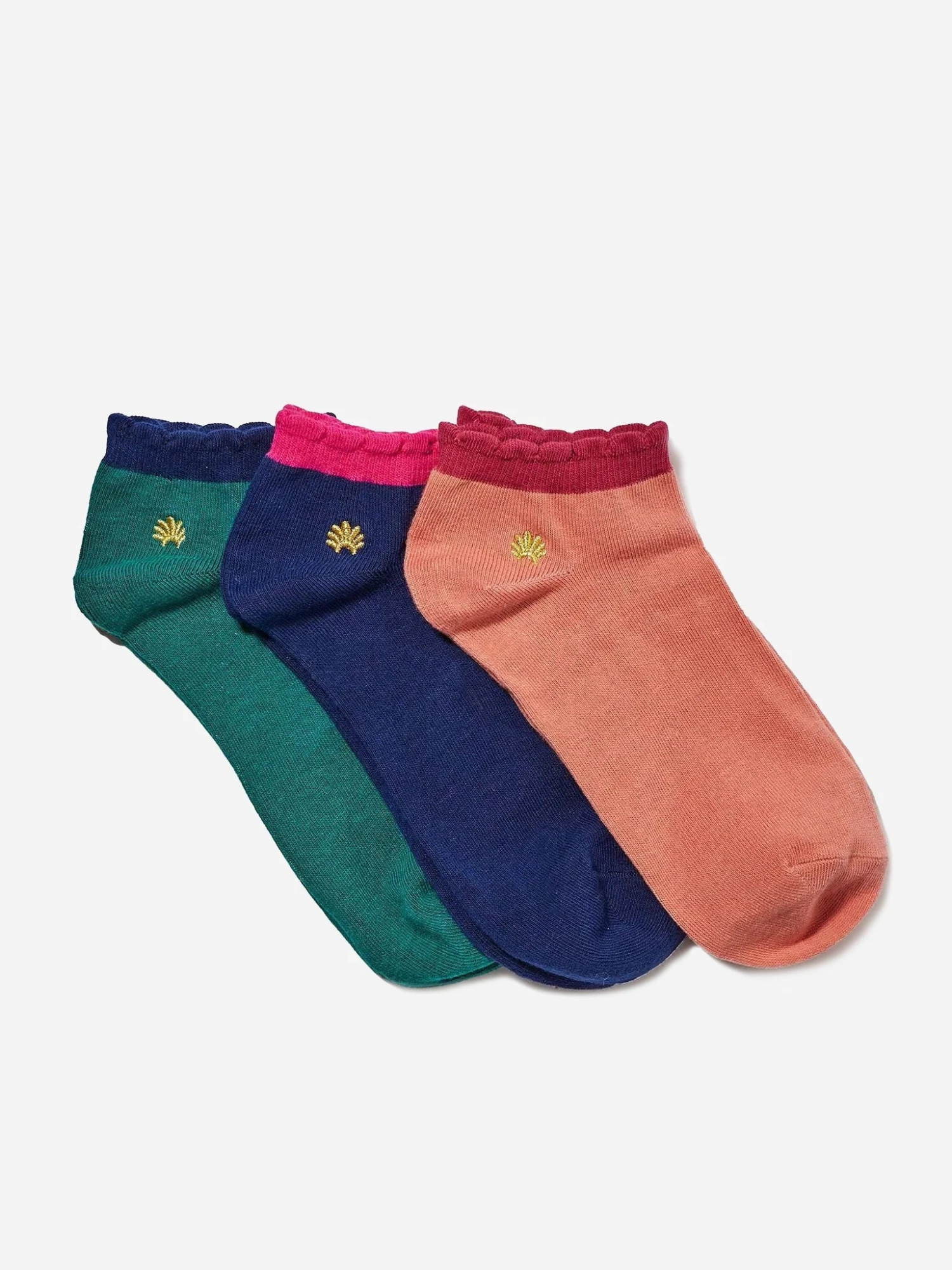 FEATURES:3-Pack of SocksAnkle LengthContrast CuffEmbroidered LogoMoisture-WickingOne Size Fits Women’s Shoe Size 7-10
