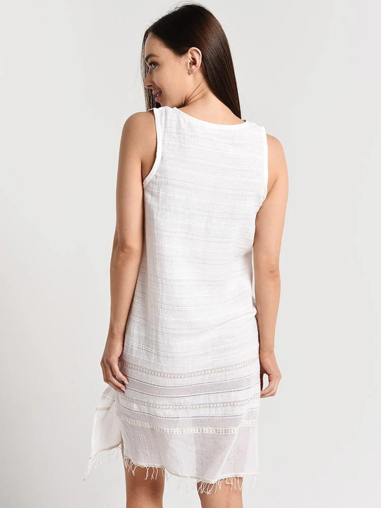 FEATURES:100% CottonSide SlitsV Neck ImportedModel is wearing size small dress.