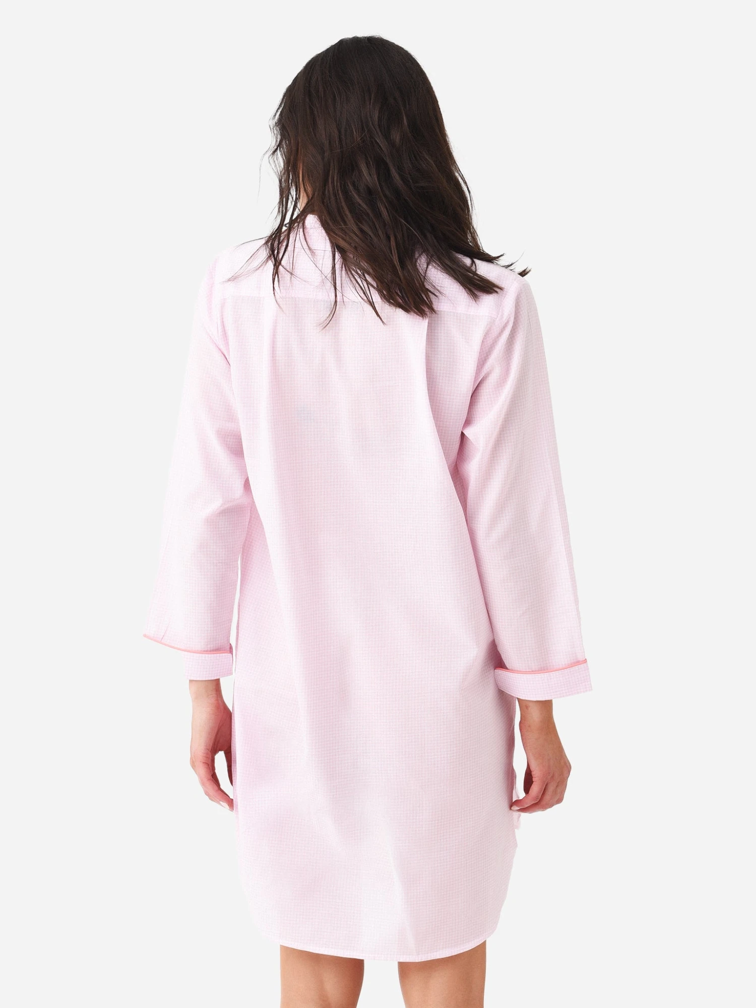 FEATURES:NightshirtSpread CollarSplit V-NecklineLeft Chest PocketLong Cuffed SleeveRounded HemAll-Over Gingham PrintPiping TrimPull-Over Style100% CottonRelaxed FitModel is wearing size Small nightshirt.Model’s Measurements: Height: 5’9.5″ | Bust: 34A | Waist: 26.5″ | Hips: 37″ | Dress Size: 2-4 (US)