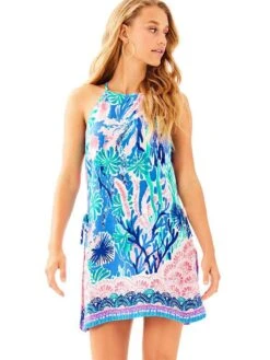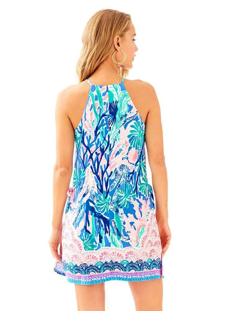 FEATURES:Engineered Donna Romper With A Halter Neckline.Satin Back Crepe – Print (100% Polyester).Hand Wash Cold. Separately.Imported