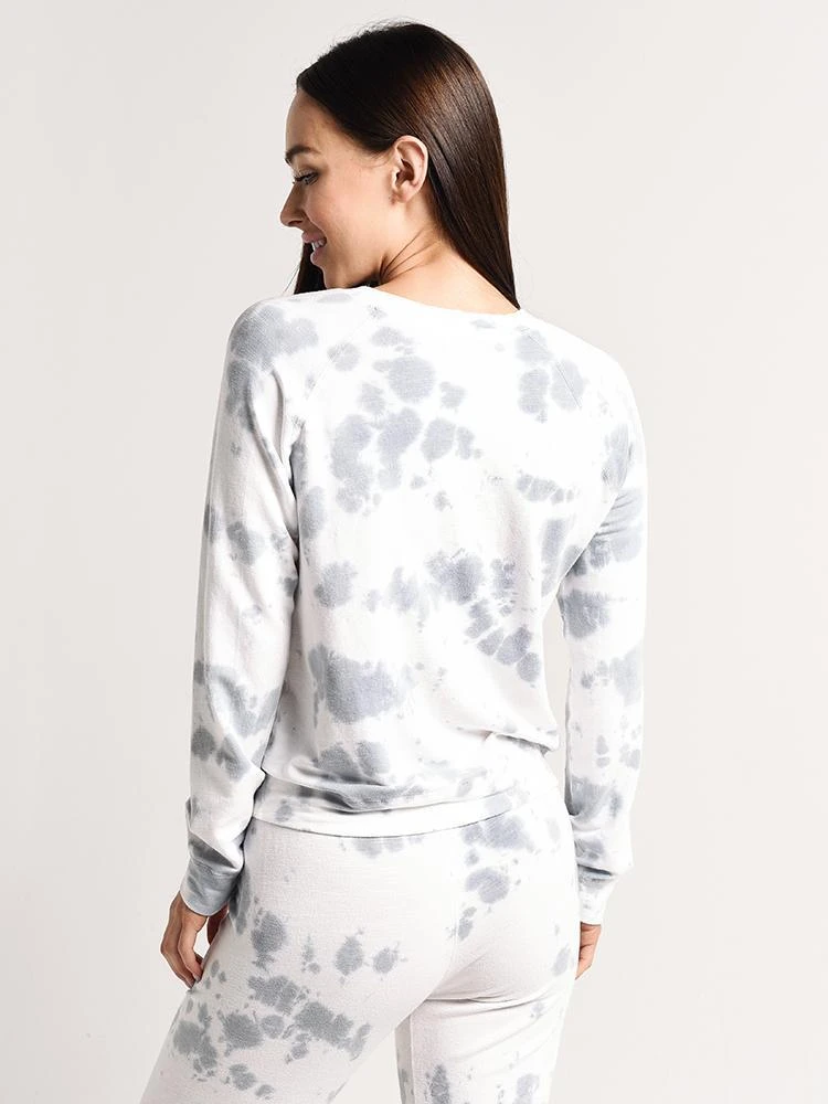 The Monrow Vintage Raglan Pullover with Cloud Tie Dye pairs well with the dreamy Monrow Elastic Waist Sweats with Cloud Tie Dye.