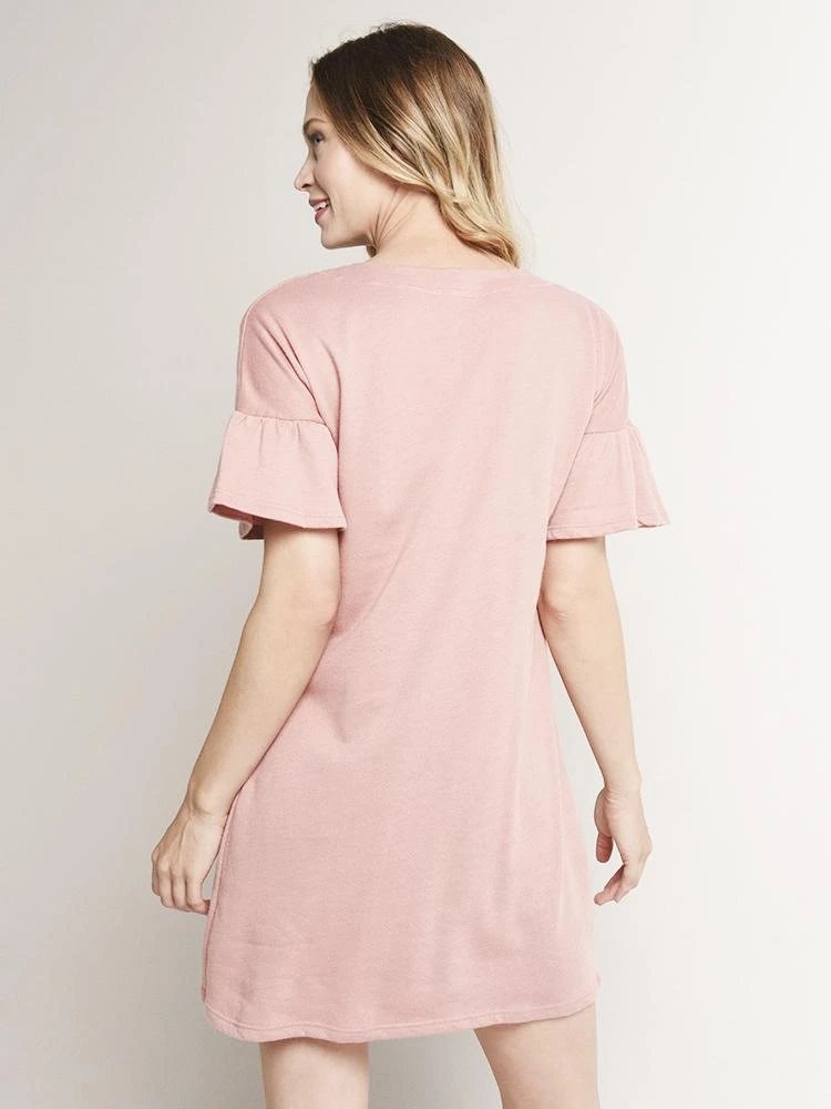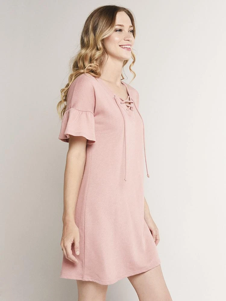 FEATURES:Lace neck detailBell Sleeves Straight hemline.ImportedModel is wearing size small dress.