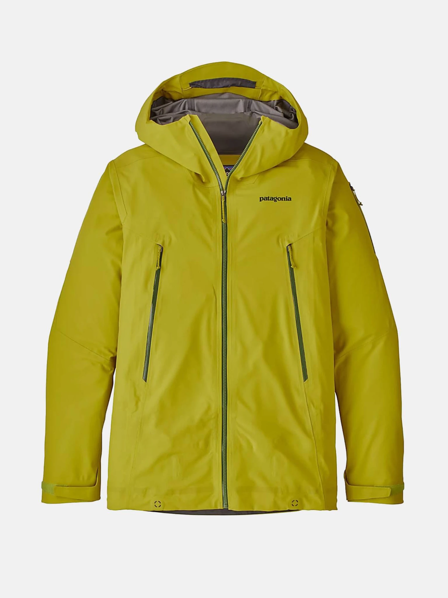 FEATURES:Helmet-compatible, 2-way-adjustable fixed hood with laminated visor for optimal visibility in bad conditions; Cohaesive embedded cord-lock system in hood and hem provides quick and easy adjustmentCoated, slim zip zippers to reduce bulk Vislon center-front and chest pocket zips are durable and easy to useTwo mesh-backed front pockets are positioned for easy access while wearing a backpackAdjustable powder skirtConnects to any Patagonia snow pant with webbing loop at center back Interior stash pocket Concealed RECCO reflector3-layer, 4.9-oz 50-denier 86% nylon/14% polyester plain weave with mechanical stretch and a DWR (durable water repellent) finishRegular Fit
