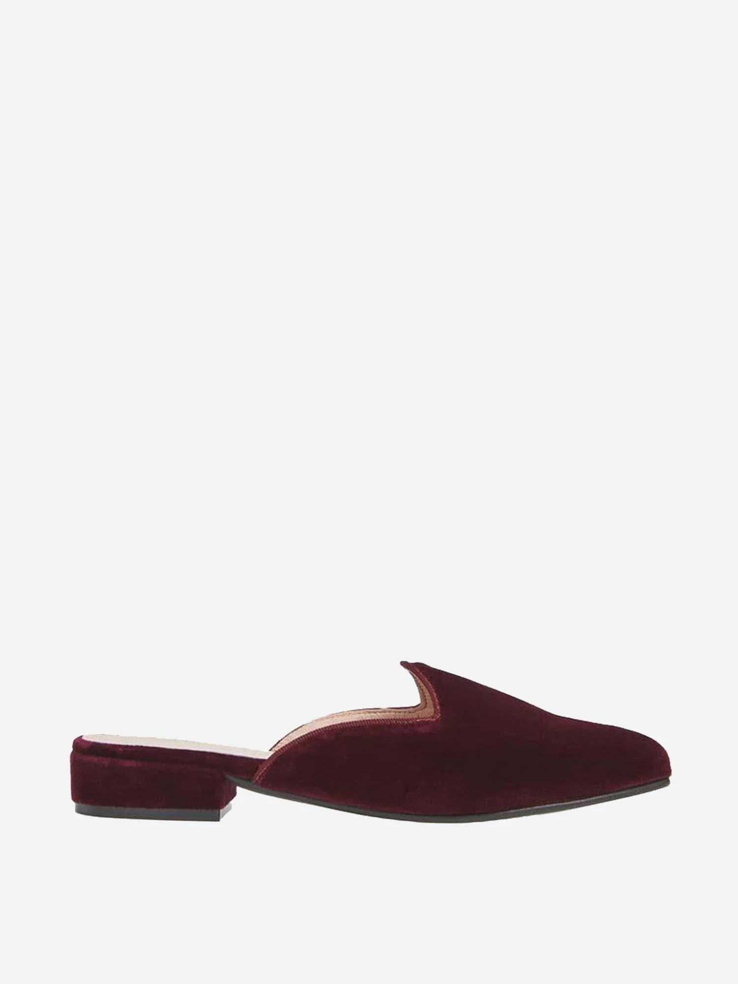Dense velvet imparts lustrous depth to a simple, elegant Spanish-made mule lifted by a low heel.