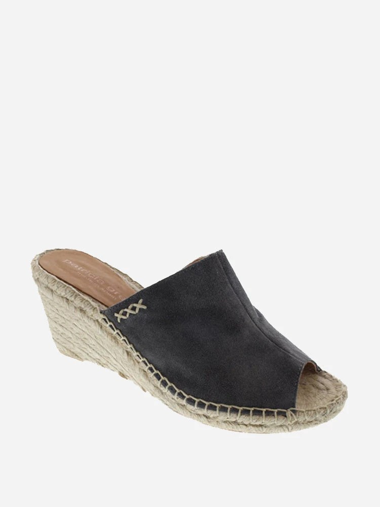A soft suede playful mule with a 2 1/2 inch jute wedge for the perfect height and great comfort.Â