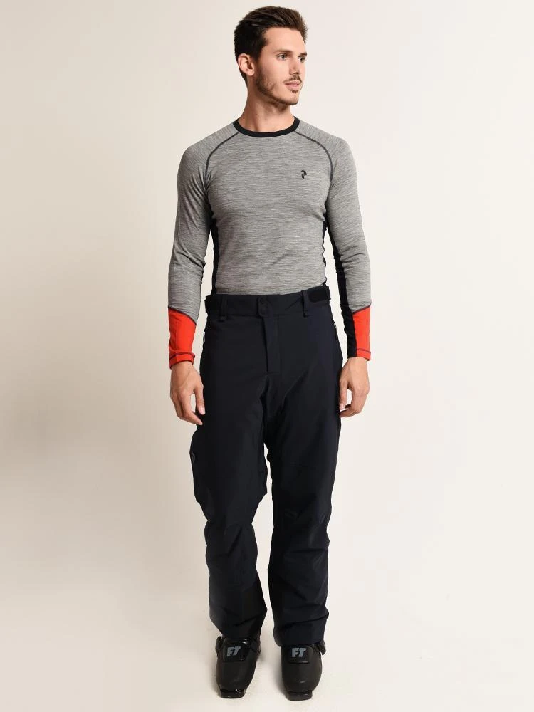 FEATURES:Two snap closures and zip fly Adjustable velcro waist Snap in systemTwo zippered hand pockets, one zippered back pocketArticulated kneesSnow gaiters Reinforced cuffs at hemWater column: 10.000 mm, Breathability: 10.000 gr/m2/24h100% Polyester RecycledStyled with Peak Performance baselayer Style # G63083017. Model is wearing size medium pant and baselayer.
