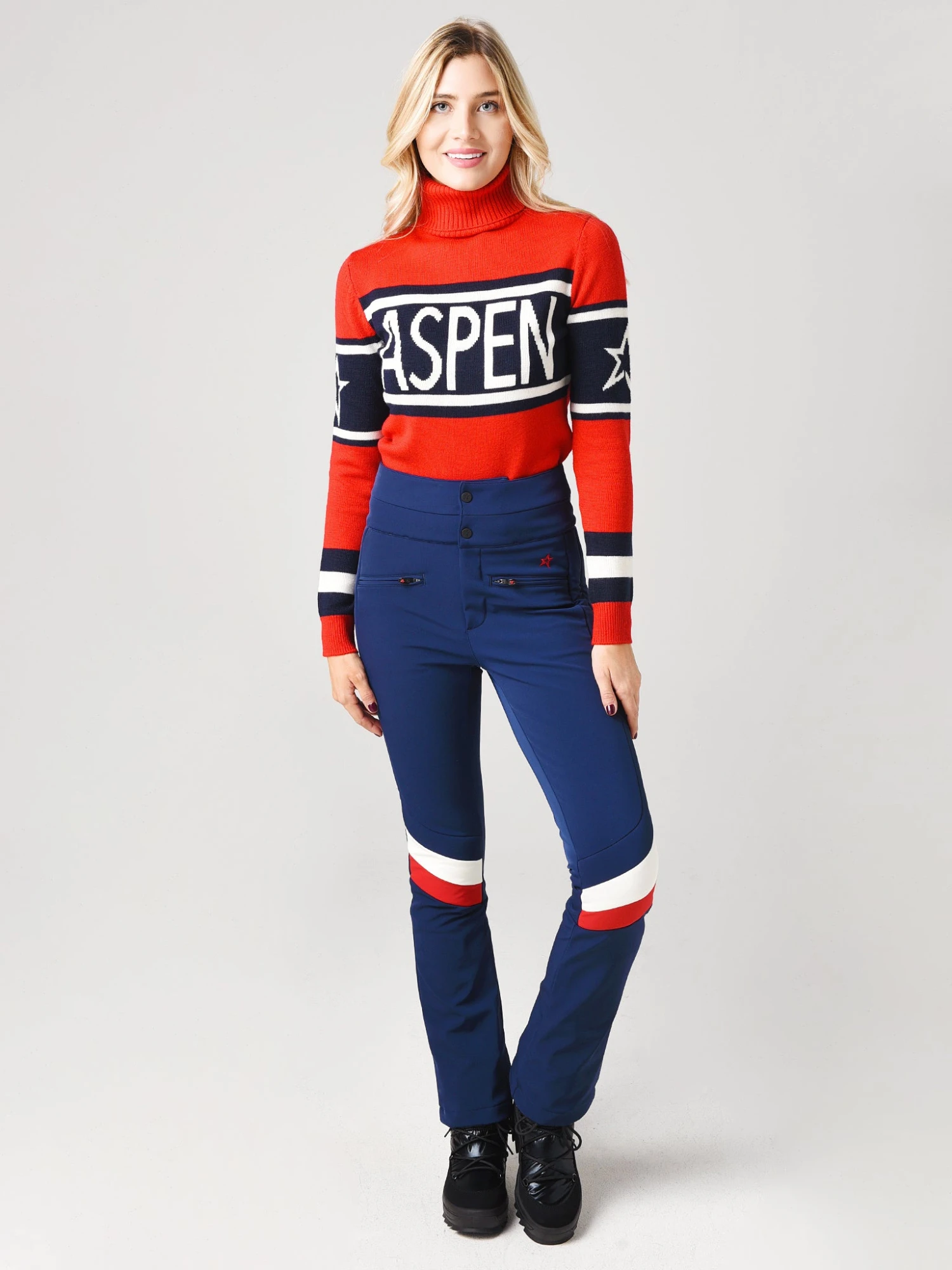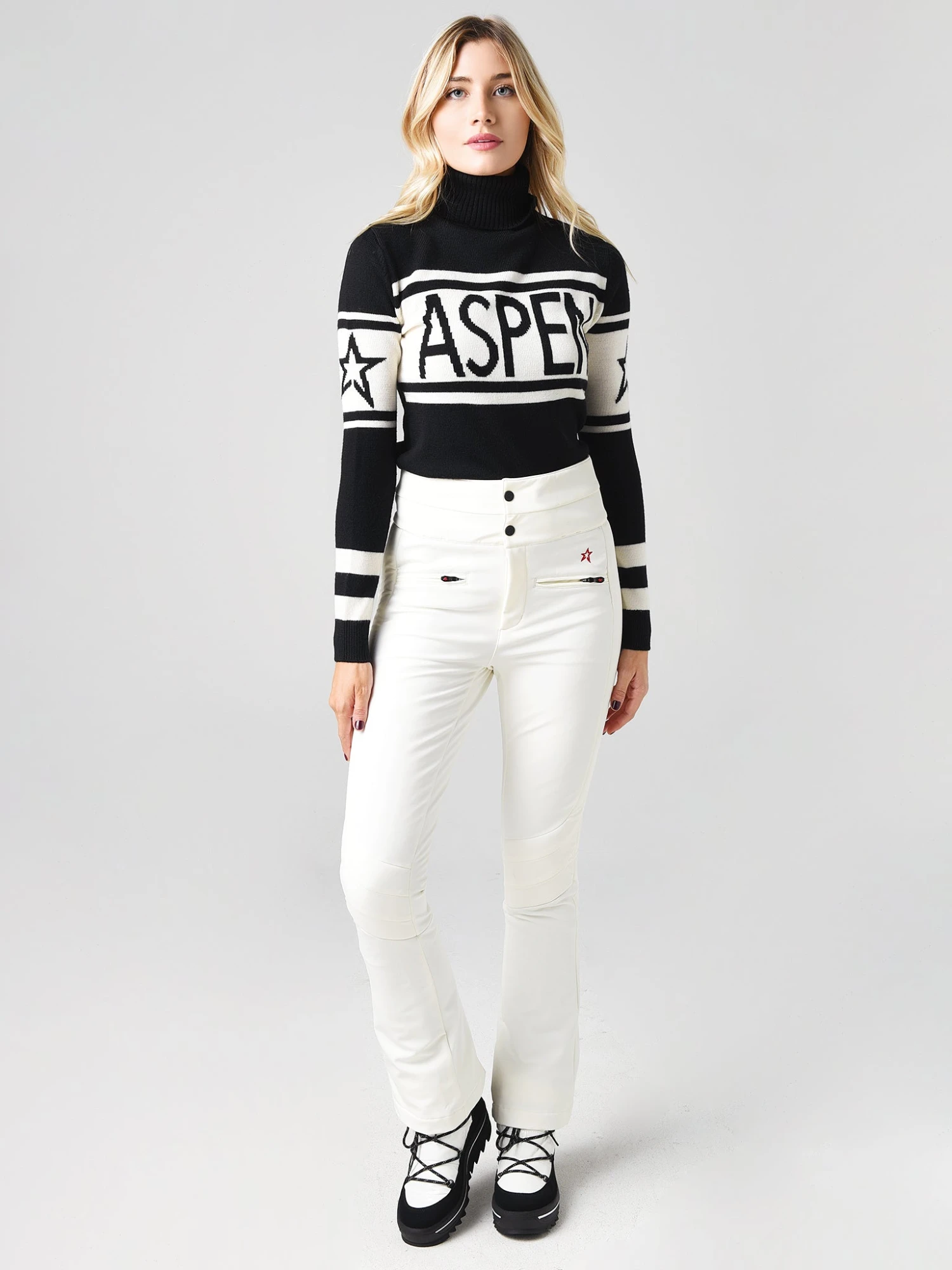 FEATURES:TurtleneckRibbed knit trimFittedAspen intarsia with star printExtra-fine Merino wool using Biella yarn100% Merino WoolModel is wearing size small sweater and pant. Model’s Measurements: Height: 5’9″; Bust: 34B; Waist: 26″; Hips: 37″; Dress Size: 2-4 (US)
