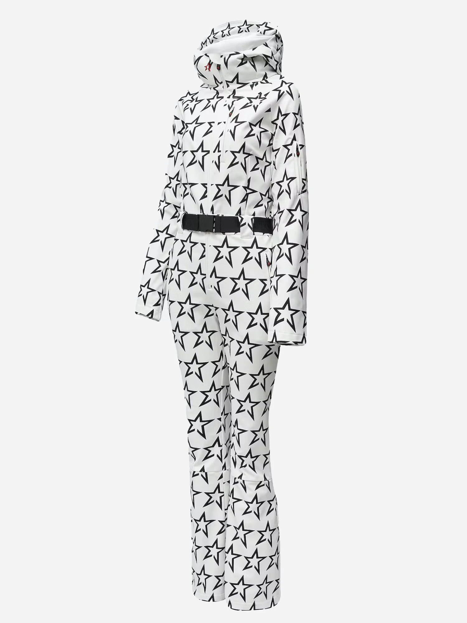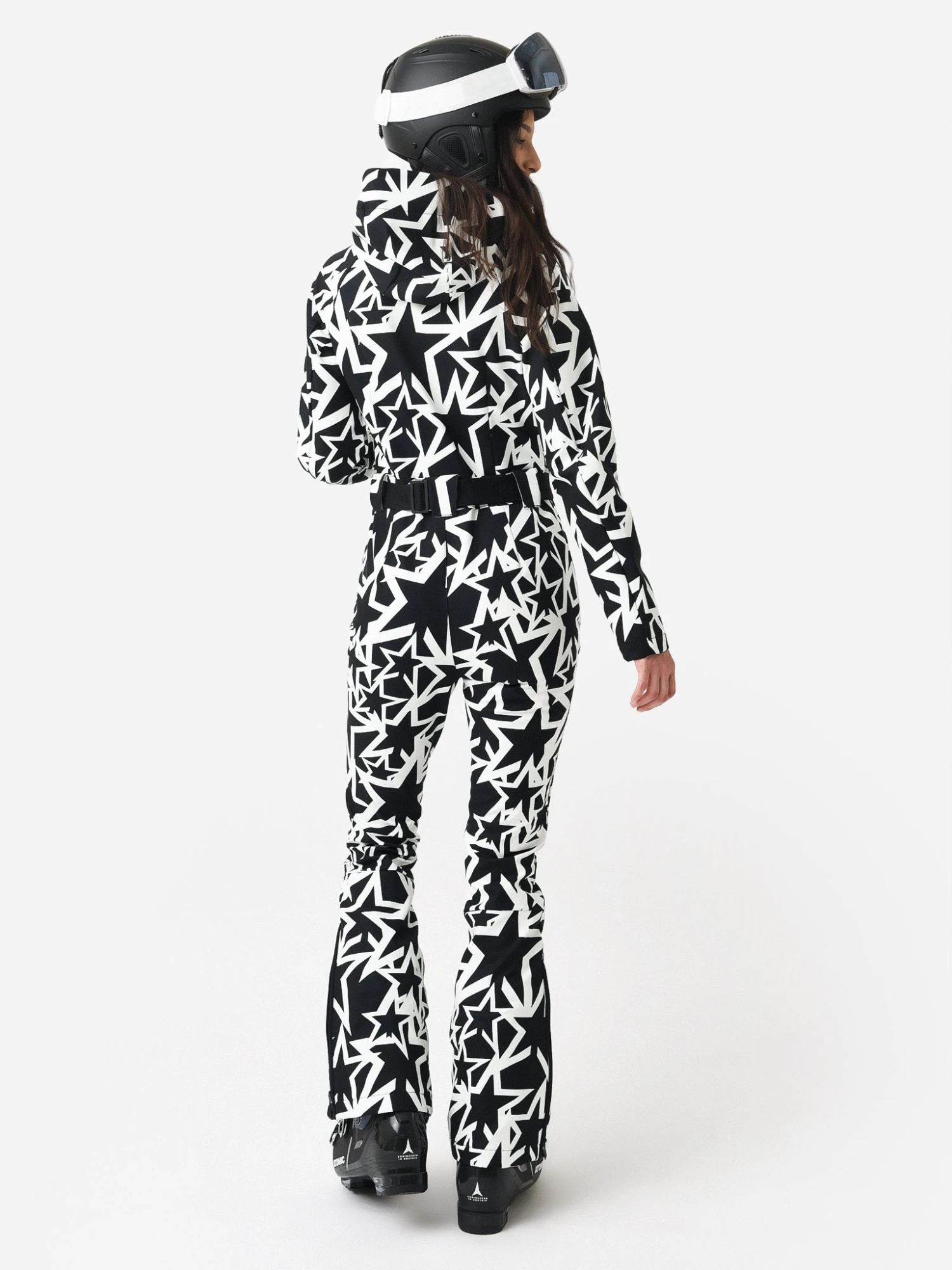 FEATURES:Ski SuitAttached HoodLong SleeveFront Zip ClosureAdjustable BeltSide PocketsAll-Over Novelty Print4-Way StretchWater-Resistant & BreathableThermal Fleece LiningShell: 89% Nylon 11% Polyurethane | Backing: 100% Polyester | Lining: 100% NylonSlim FitModel is wearing size Small ski suit.Model’s Measurements: Height: 5’9″ | Bust: 32B | Waist: 24″ | Hips: 36″ | Dress Size: 2 (US)