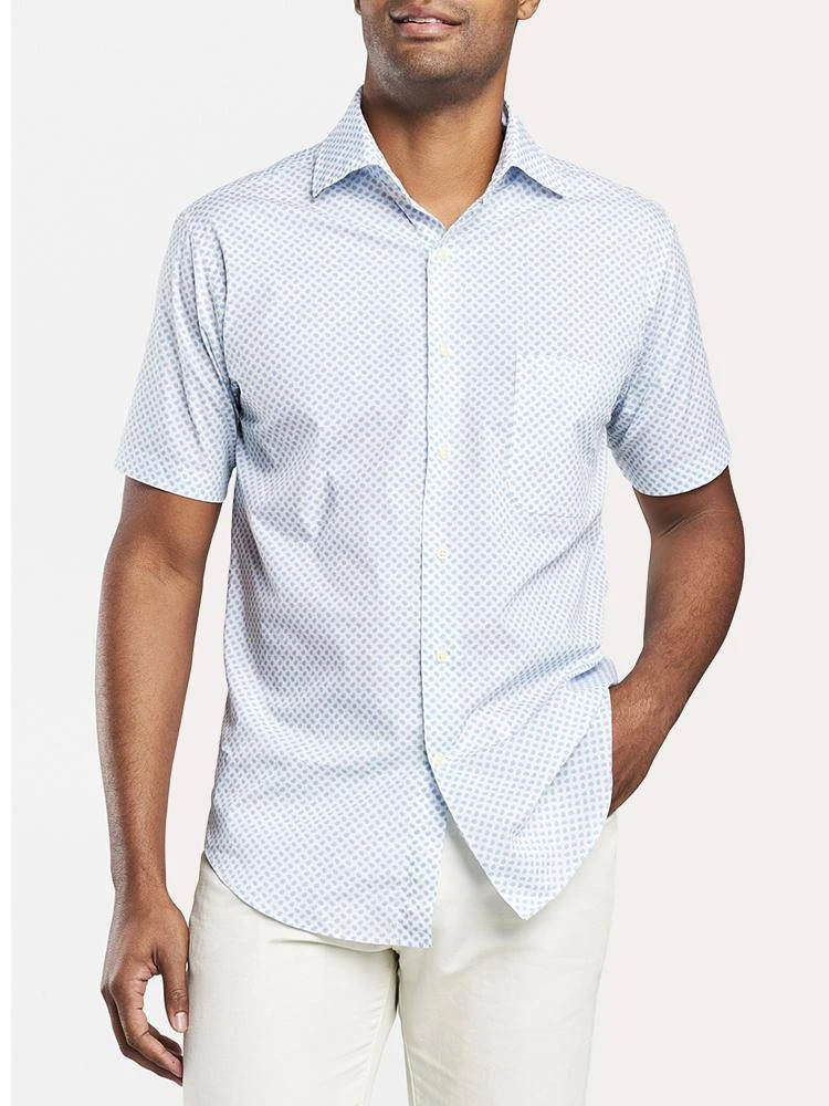 The Peter Millar Beach Leaves short sleeve sport Shirt is ready for warmer days.