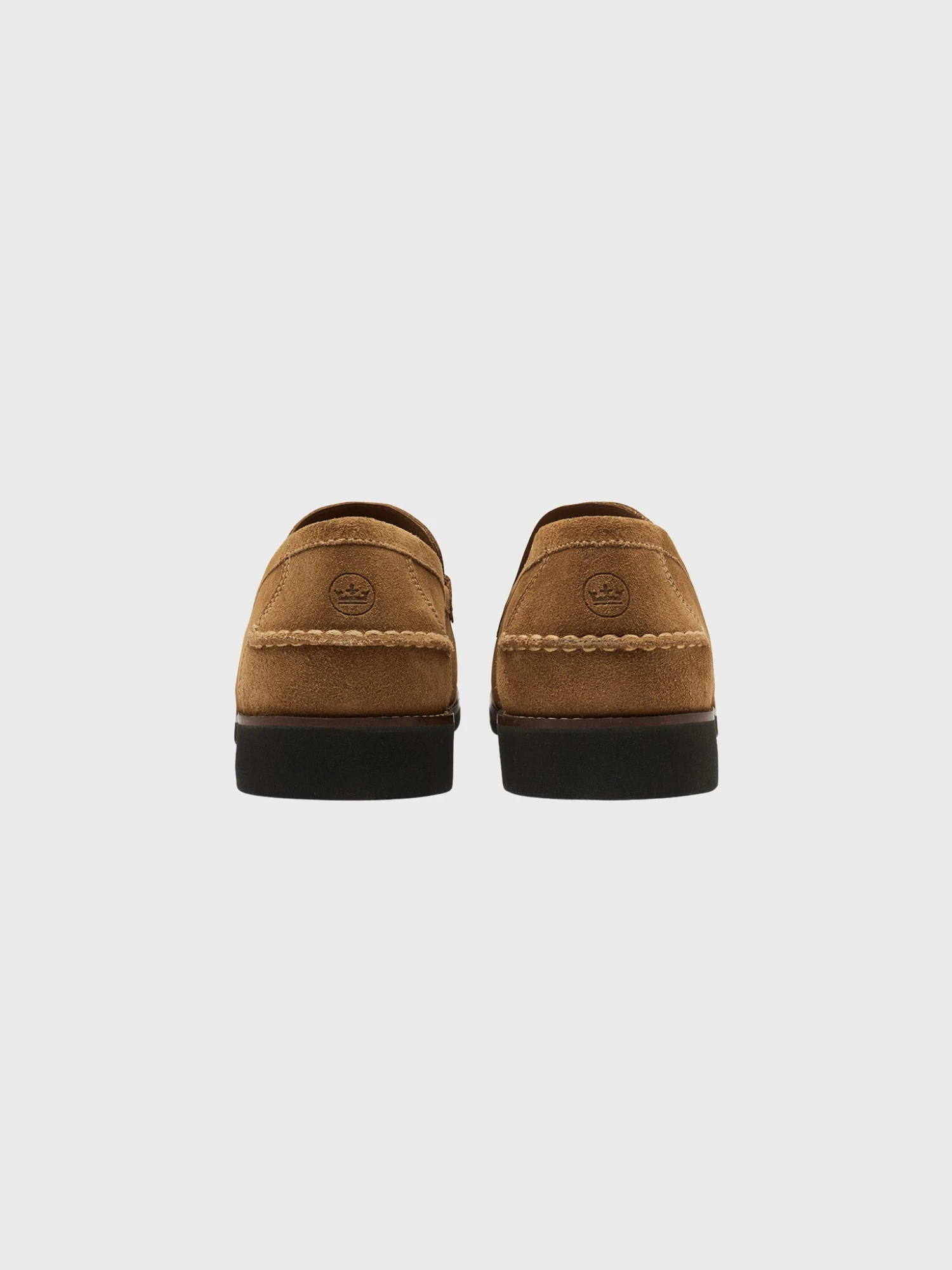 FEATURES:Penny LoaferUPPERS: BLOCKEDKEYWORDSUPPLE SUEDEVamp: Saddle StrapRounded, Hand-Stitched ToeLining: SheepskinInsole: Cushioned Innovative Foam InsoleSole: RubberOutsole: Hyperlight OutsoleExcellent Moisture ManagementHandsewn Fabrication100% Suede