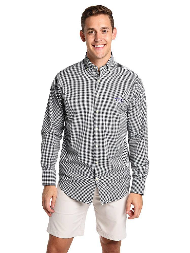 Root on your team in the Peter Millar Men’s Collegiate Check Performance Sport Shirt with a moisture-wicking finish.