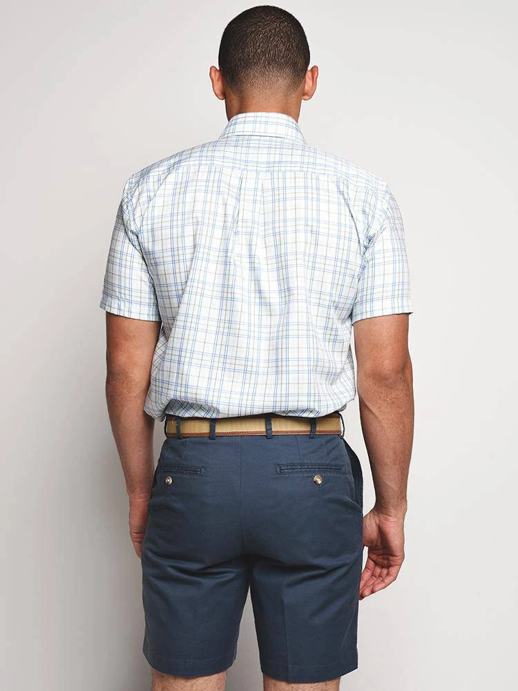 The wrinkle-resistant and breathable Peter Millar Crown Ease Sloan Plaid Short Sleeve Sport Shirt is a season favorite.