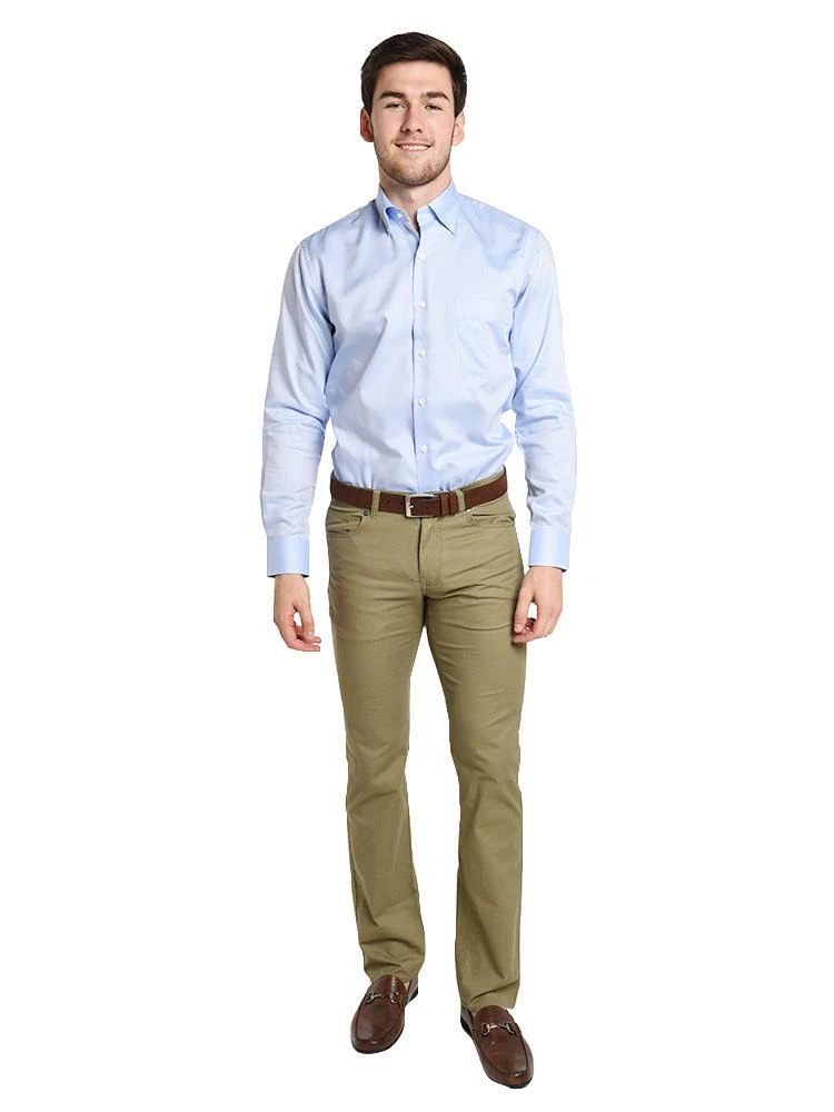 FEATURES:Button down collar Chest pocket French placket Double-barrel cuffs Droptail hem 67% cotton, 33% silk Dry clean Machine wash Imported Styled with Peter Millar pants Style # MS18B47 and loafers Style # MC0F11. Model is wearing size medium shirt and size 32 pant.
