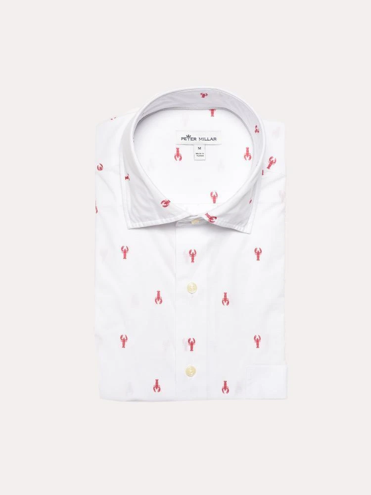 Head out on vacation in the Lobster print Peter Millar Main Squeeze Short Sleeve Sport Shirt.