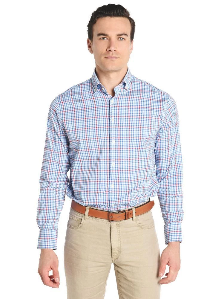 The Peter Millar Mickey Performance Multi-Gingham Sport Shirt offers all-day comfort for your busy schedule.
