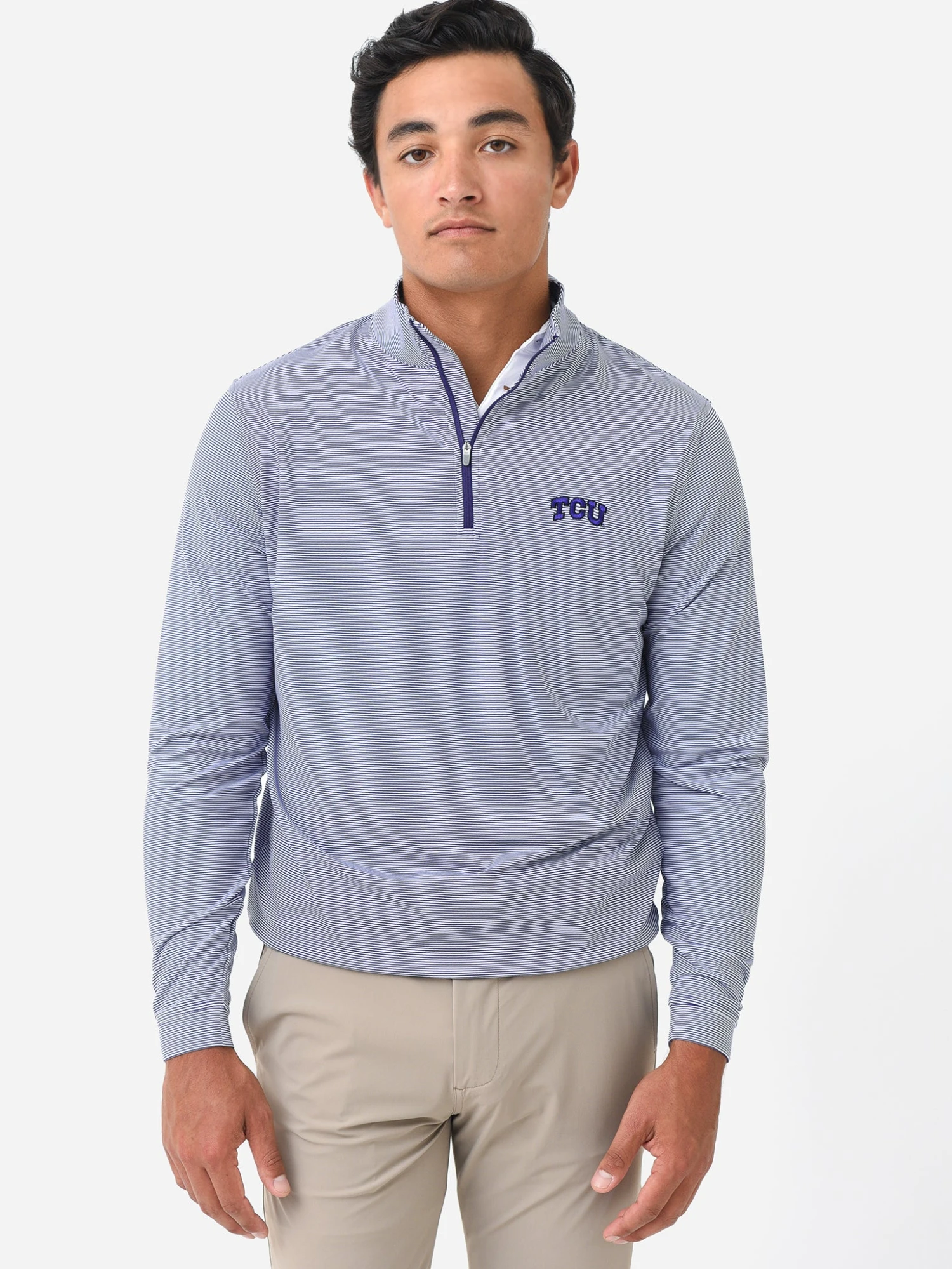 FEATURES:Pullover SweaterQuarter-Zip ClosureSMU Logo on Left Chest PocketLong SleeveMoisture-WickingUPF 50+ Sun ProtectionEasy-Care89% Microfiber Polyester, 11% SpandexClassic FitModel is wearing size Medium pullover sweater.Model’s Measurements: Height: 6’0″ | Waist: 32″ | Inseam: 32″ | Collar: 16″ | Sleeve: 35″ | Suit: 40L
