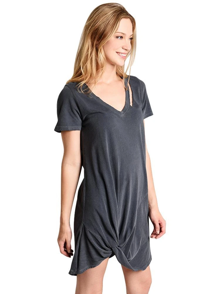 FEATURES:V-neckline with distressed detailing Tie detail at hem High-low hemline Unlined 100% cotton Made in the USA Styled with Superga sneakers Style # S0099Z0. Model is wearing size small dress.