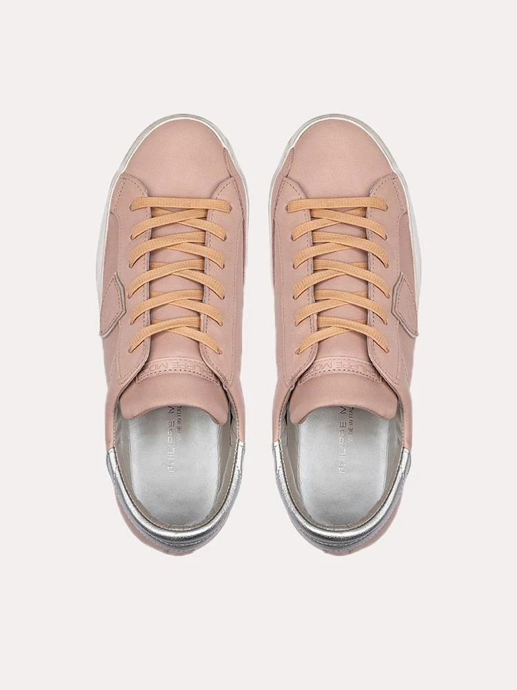 The Philippe Model Paris Sneaker features pink and silver metallic leather details.