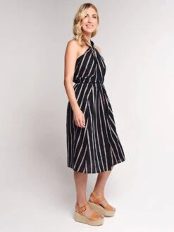 Vince Textured Stripe Twist Front Halter Dress
