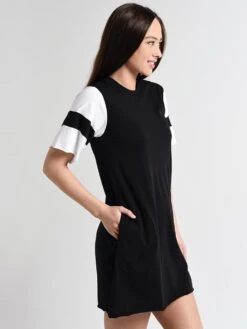 ATM Women’s Classic Jersey Striped Sleeve Crew Neck Dress
