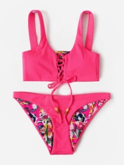 Maaji Women’s Fuchsia Dianthus Danzel Lace-Up Bralette Bikini Top