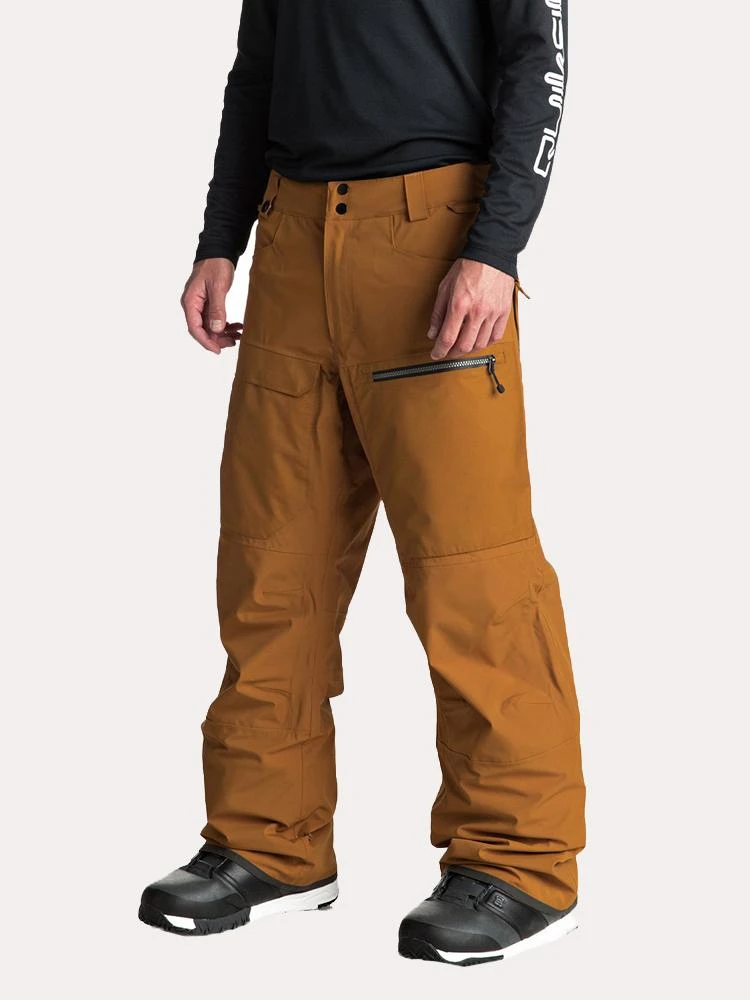 FEATURES:Inside waist adjusterZip secured pocket at thigh and back Mesh lined ventingReinforced bottom hem panelTaffeta boot gaiter with Lycra stretch panelYKK Aquaguard waterproof zipsCuff saver systemJacket-to-pant attachment systemFully taped seams Strategic body mapping of brushed tricot and stretch mesh Mega-stretch polyester twill20K Quiksilver DryFlight technology for extreme waterproofing [20,000 mm/20,000 g]85% Polyester, 15% Elastane