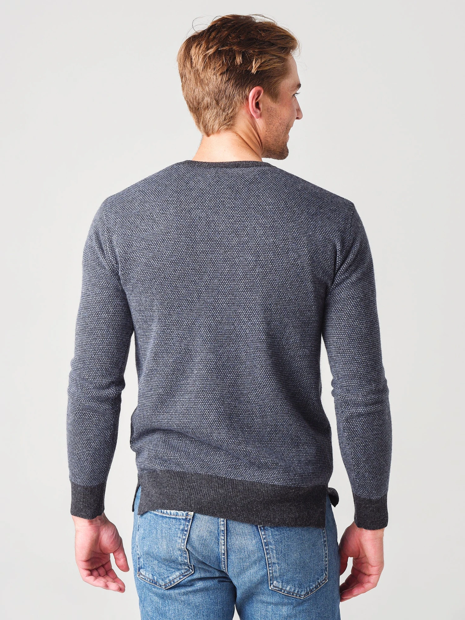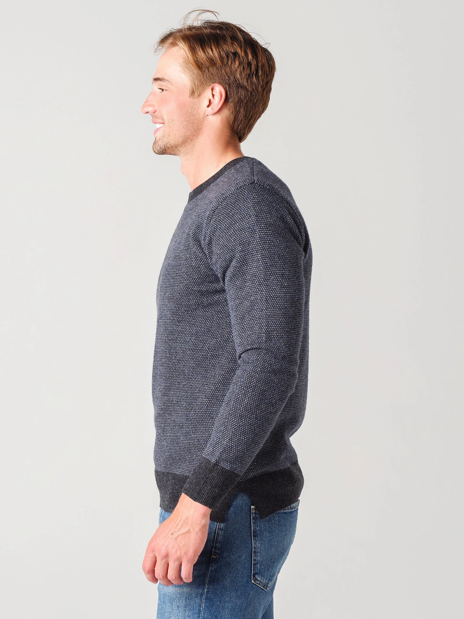 FEATURES:SweaterCrew NeckLong SleeveNavy BlueTextured WeaveRibbed at Cuffs and HemFits True to Size50% Wool, 50% NylonModel is wearing size Small sweater.Model’s Measurements: Height: 6’2″; Waist: 32″; Inseam:33″; Collar: 15″; Sleeve: 35″