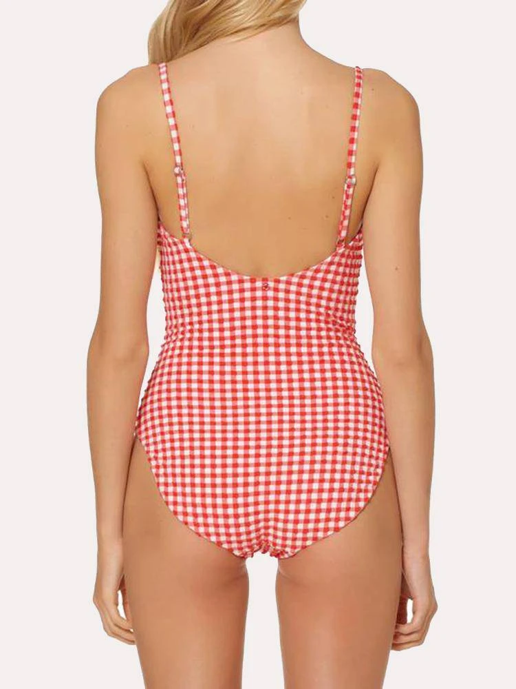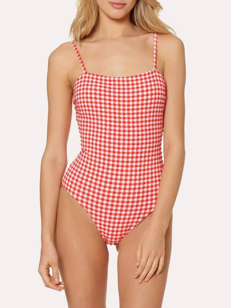 FEATURES:Square neckline.Removable contour pads provide support and shape.Adjustable shoulder straps.Moderate rear coverage.52% polyester, 41% nylon, 7% spandex.Hand wash, line dry.Imported