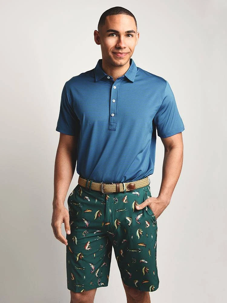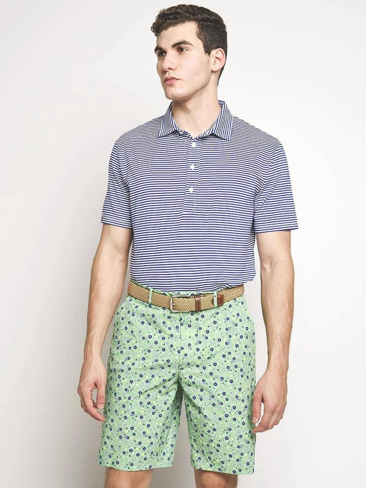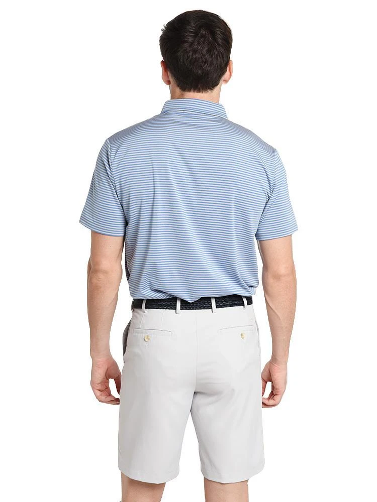 FEATURES:Three-button placketChest pocketLogo tag on sleeveBreathable and quick-drying96% polyester, 4% elastaneStyled with Peter Millar shorts Style # MC0EB82. Model is wearing size medium polo and size 32 short.