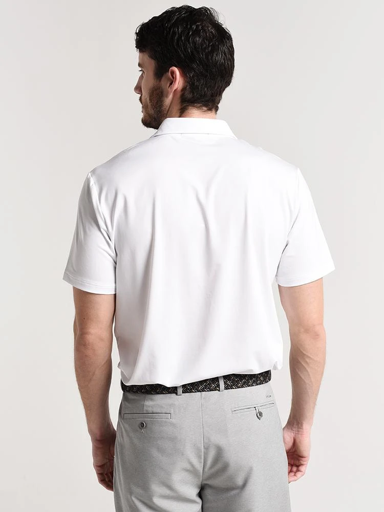 FEATURES:Three-button placketChest pocketLogo tag on sleeve96% polyester, 4% elastaneStyled with Peter Millar shorts Style # MC0EB82. Model is wearing size medium polo and size 32 short.