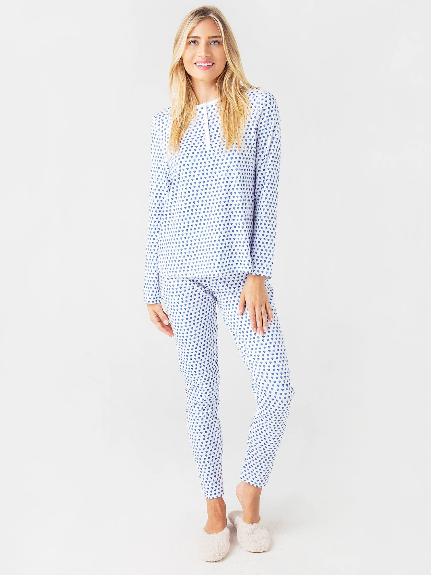 Heart-printed pajama set made from ultra-soft Pima cotton.