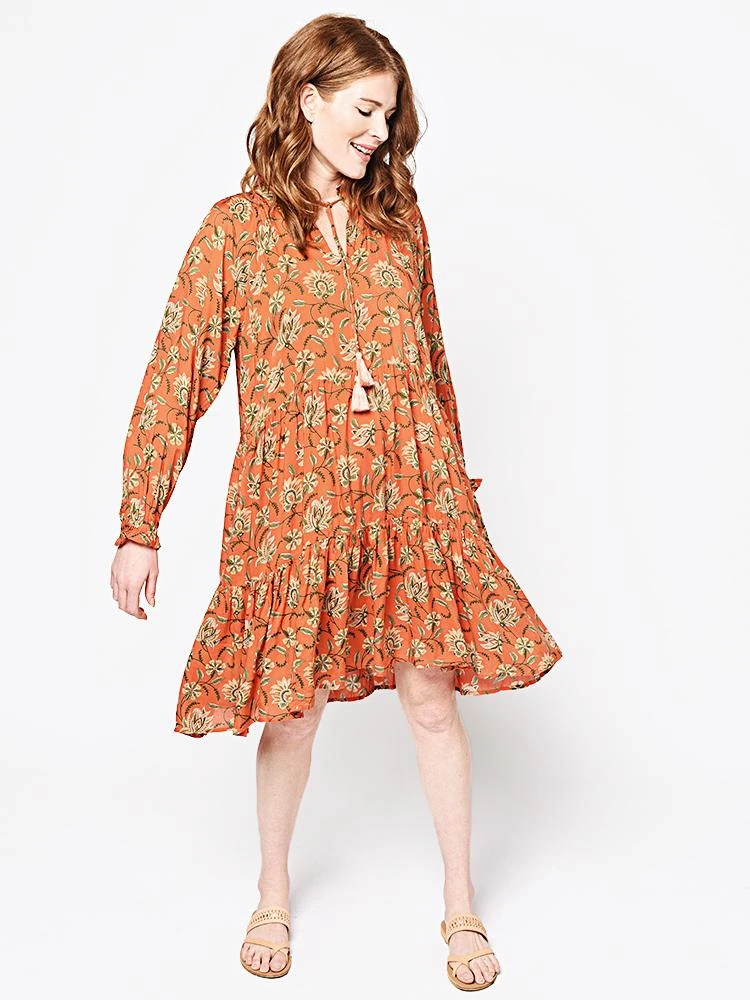 FEATURES:Tunic DressSplit V-NecklineTassel DetailElasticated CuffsDropped HemRuffle Neckline Detail100% ViscoseModel is wearing size Small dress.