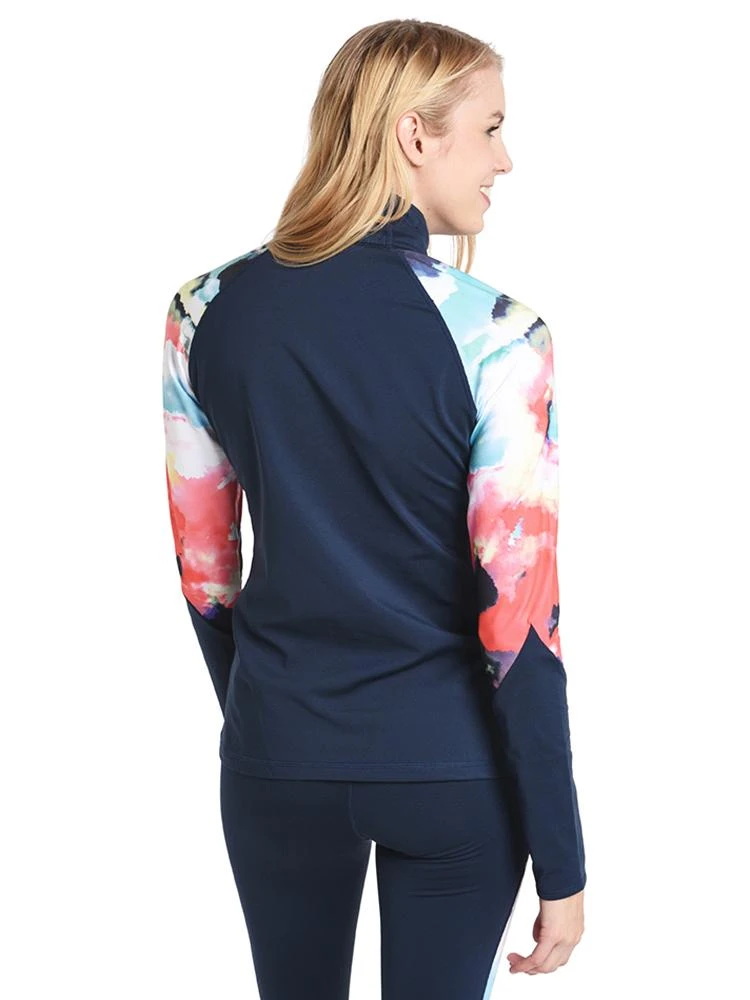 FEATURES:Long sleevesLight fabricBrushed on the inside for a super-soft feelHalf zip at collarMesh piecings at sides for ventilationThumbholes and chin guardSpecial antimicrobial treatment avoids odoursReflective logo at chestStyled with Roxy Baselayer pant Style # ERJNP03113. Model is wearing small top and bottom.