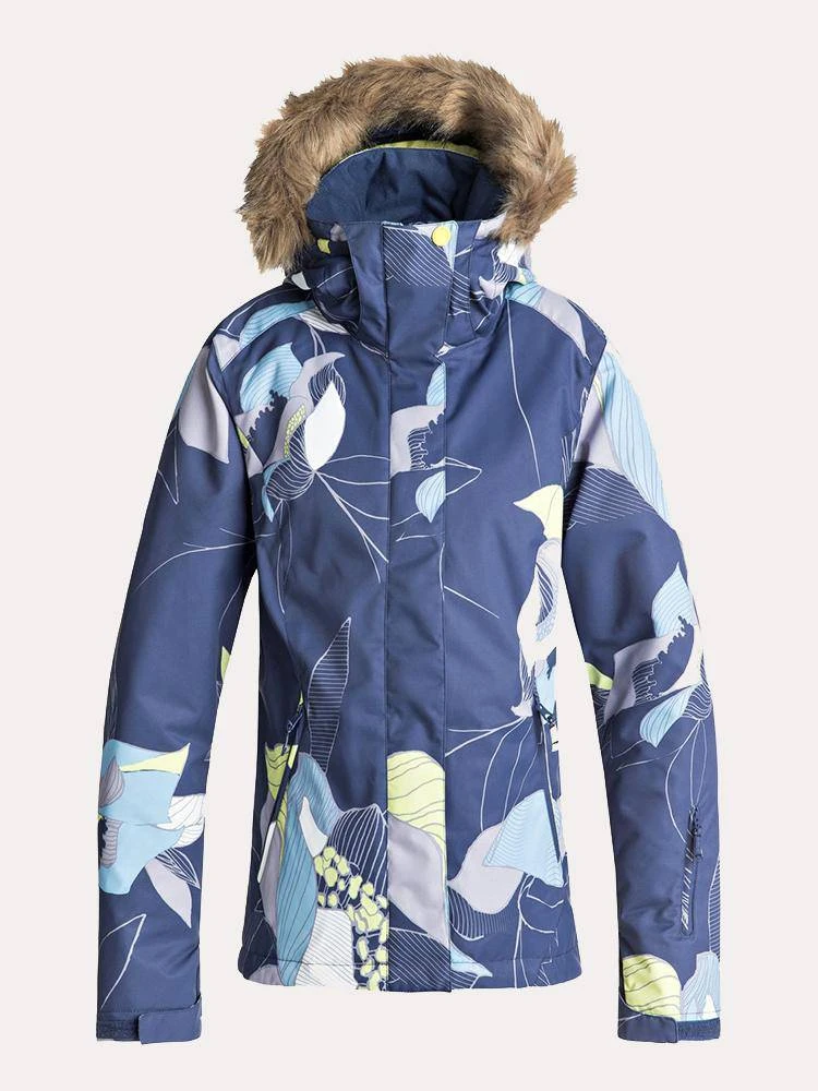 Make a stylish statement on the slopes in the printed Roxy Jet Ski Snow Jacket with removable faux-fur hood trim.