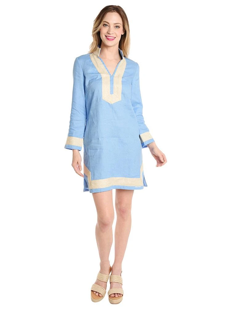 FEATURES:Split necklineSide slits at hem100% linen Machine wash Styled with Matt Bernson wedge Style # MB-15093. Model is wearing size XS dress.