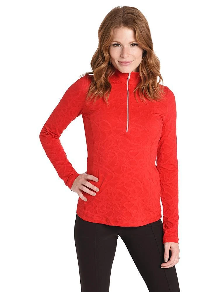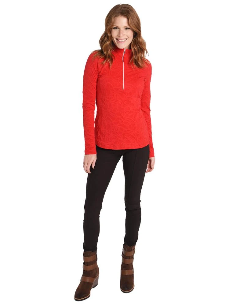 FEATURES:Soft microfiber polyester/lycra blendUltra-soft for great feel next to skinBreathable and moisture wicking to keep you dry and warmFleece lined for added warmth and comfort½- zip for easy on/off11 metallic coil zipper runs smoothlyStyled with Sno Skins leggings Style # 58303-17. Model is wearing size small top and legging.