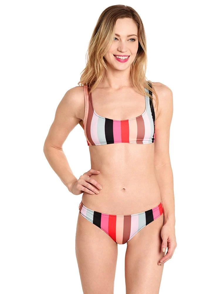 FEATURES:ScoopneckSquarebackPolyamide/elastaneHand washImported.Styled with Solid and Stripped Bikini Bottom Style # WS-1059. Model is wearing size small top and bottom.