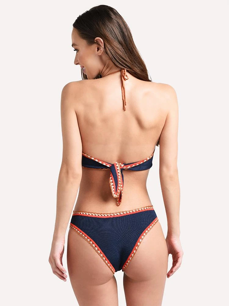 FEATURES:One Piece SwimsuitHalter Tie ClosureV-NecklineSide Cut out DetailCrotchet Styling and TextureNovelty Style TrimModerate CoverageShell: 92% Rayon, 8% ElasthaneModel is wearing a size Small one piece swimsuit.