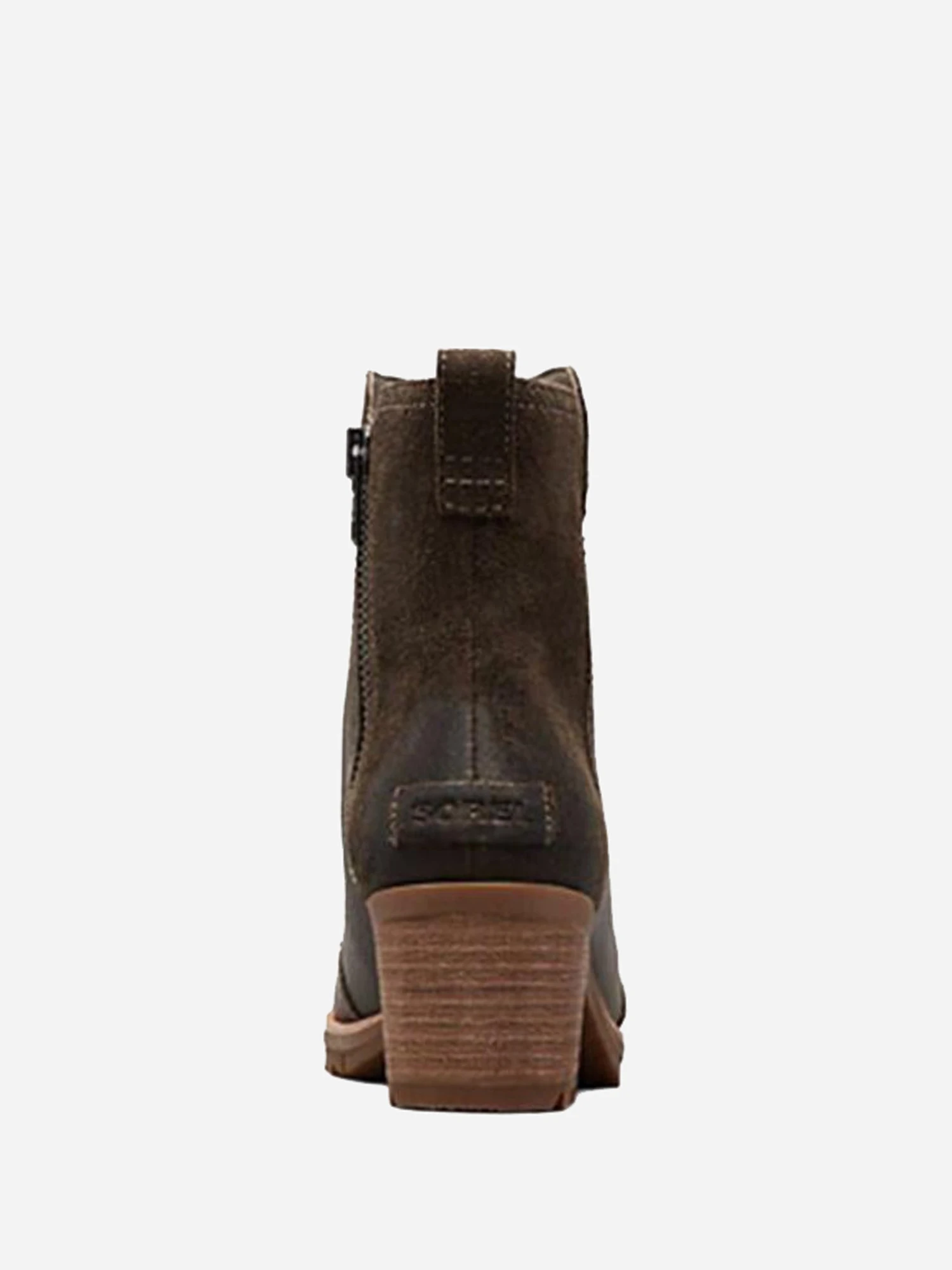 FEATURES:Pebbled leather with suede trimPull tabStacked block heelWaterproofZip closureRounded toeRubber lug soleImported