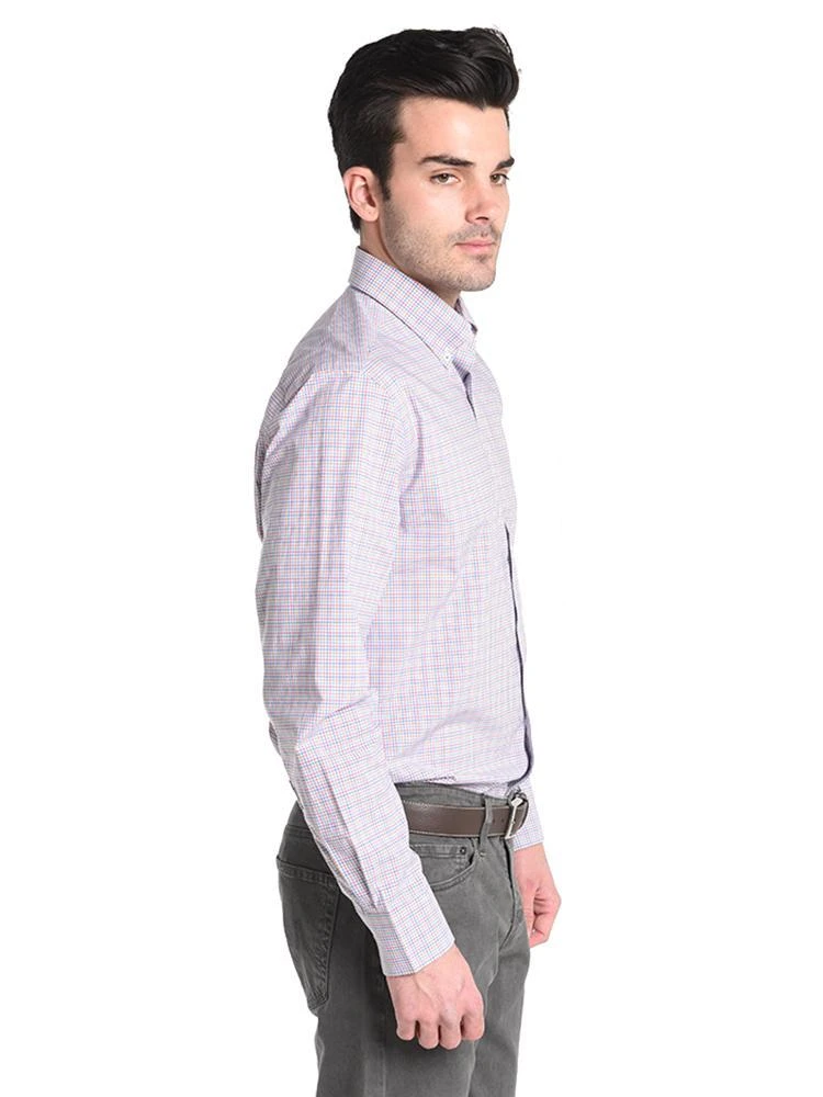 FEATURES:Button down collarLaser engraved buttons with contrast color button threadSlim fit 96% cotton, 4% stretch Machine wash Imported Styled with AG jeans Style # 1174SUD. Model is wearing size medium shirt and size 32 jean.