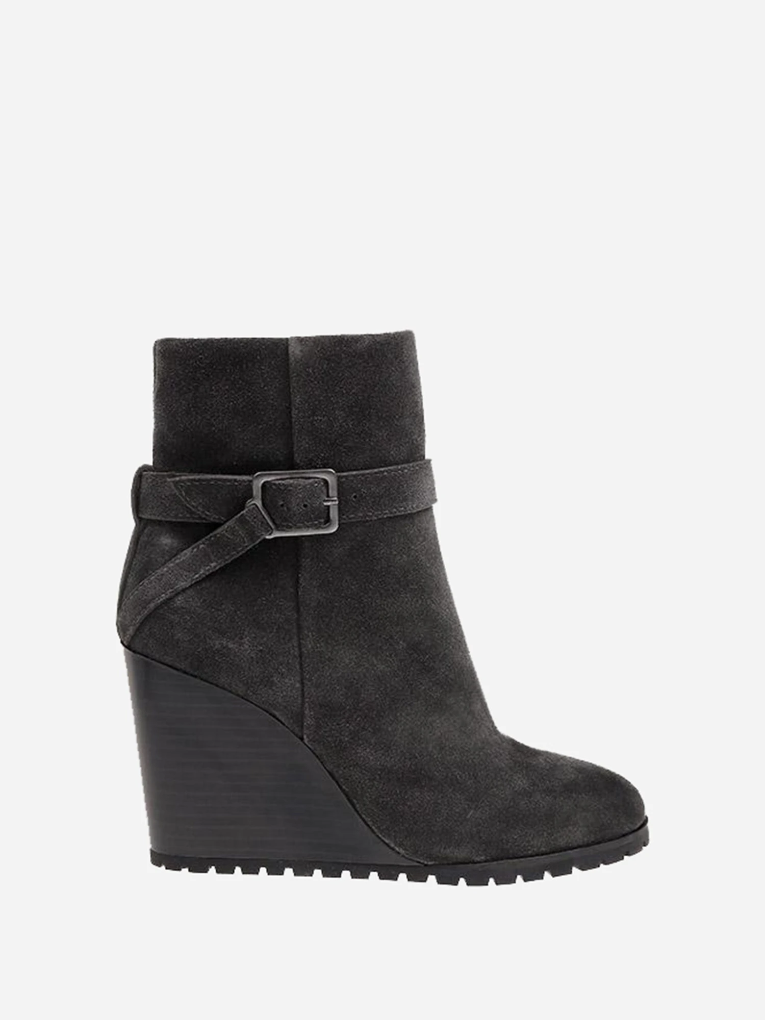 FEATURES:Wedge heelBuckle closureLeather upper and lining/synthetic soleImported