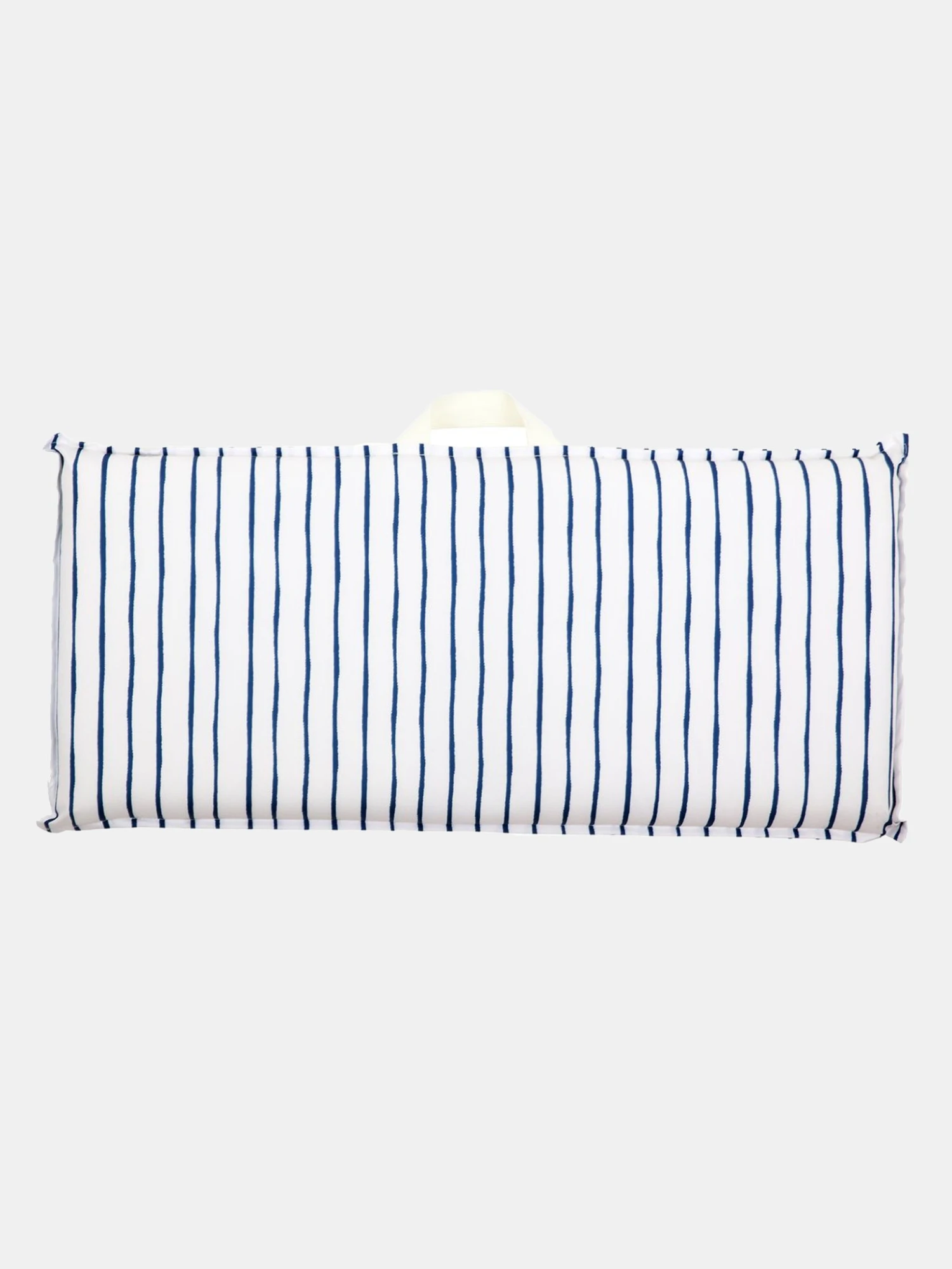FEATURES:Travel Lounger, Beach ChairAll-Over Nouveau Bleu StripeLoop Carry Handle6 Adjustable Seating PositionsWater-ResistantDurable 300D Polyester FabricationSturdy and Foldable Stainless Steel FrameSuitable for Indoor or Outdoor Use23.62 x 21.26 x 22.44 in