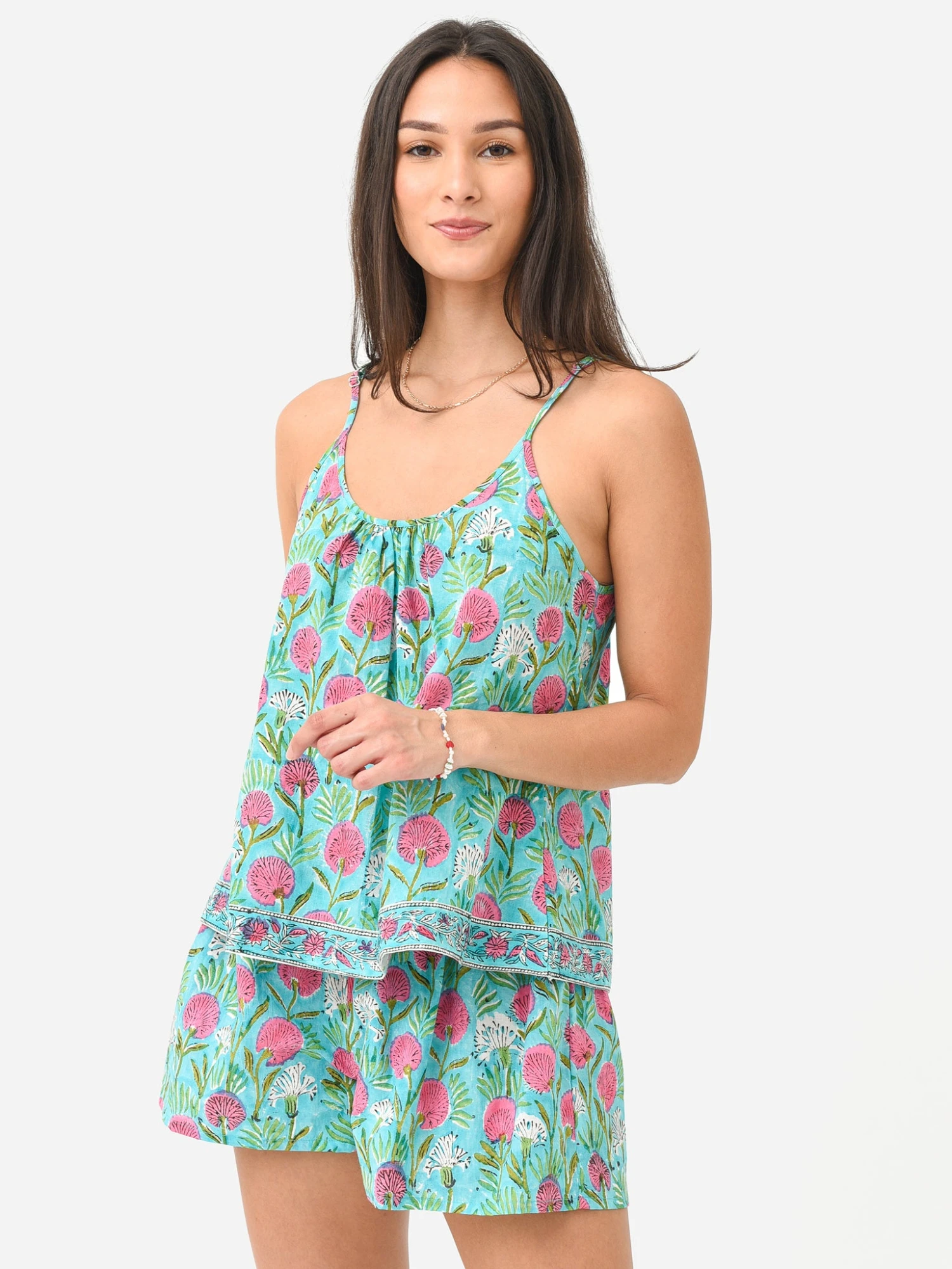 FEATURES:Pajama SetCamisole Top Thin, Adjustable StrapsStraight HemShort BottomElastic Waistband with DrawstringAll-Over Novelty PrintLightweight Fabrication100% CottonClassic FitModel is wearing size One Size pajama set.Model’s Measurements: Height: 6’2″ | Waist: 32″ | Inseam: 33″ | Collar: 15″ | Sleeve: 35″ | Suit: 42L