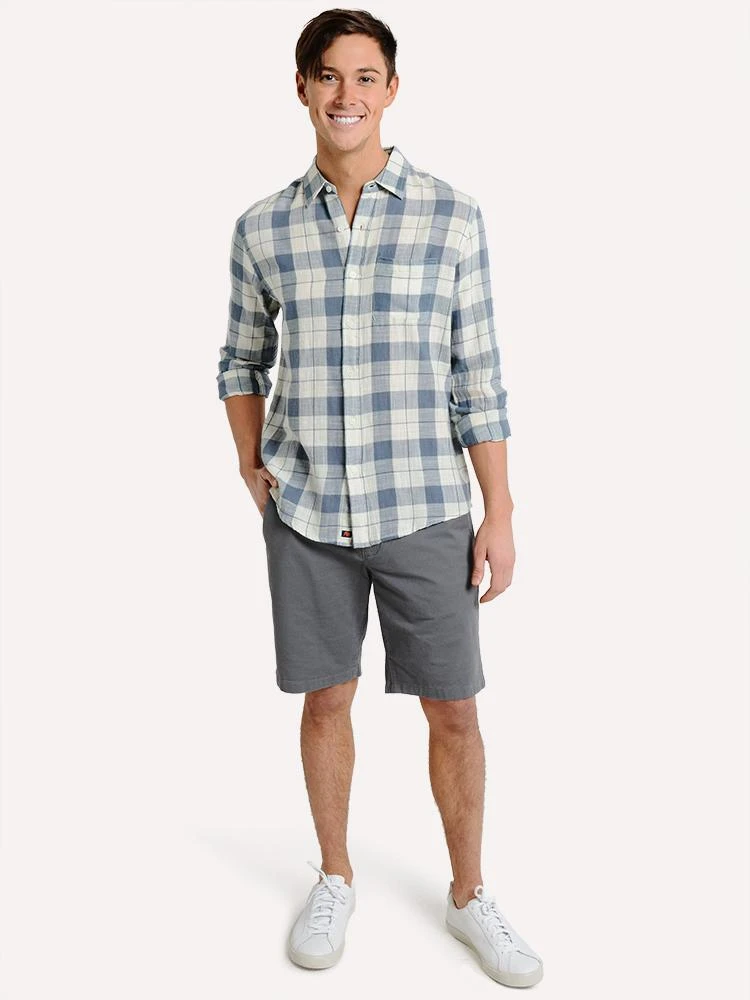 FEATURES:Button-Down ShirtLightweight Double-Barrel CuffsSignature Neck TapeEngraved ButtonsDamask Woven LabelsAcid WashedLeft Chest PocketSlub Twill Frabics100% CottonStyled with Bonobos short Style # 18088 and VEJA sneakers Style # EA2001M. Model is wearing size Mediun shirt and size 32 short.