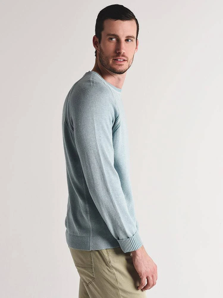 FEATURES:Crew neck Ribbed trim on neck and cuffs Raglan sleeves 95% cotton, 5% cashmereMachine wash on gentle cycle or dry cleanImported Styled with Tommy Bahama pants Style # T115497 and Sperry shoes Style # STS17393. Model is wearing size medium shirt and size 32 pant.