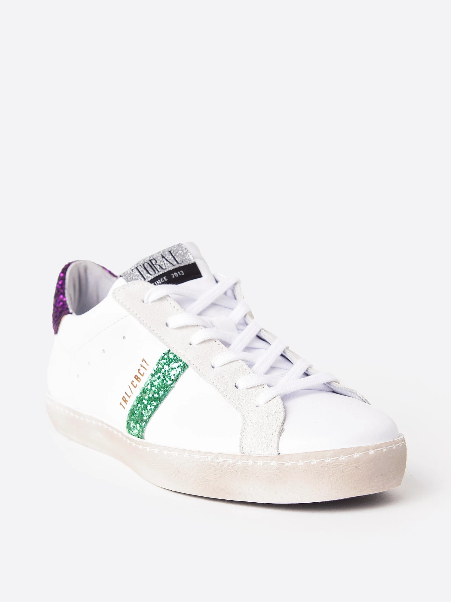 FEATURES:SneakerRounded ToeLace-Up VampContrast Glitter DetailsUppers: LeatherOutsole: RubberPlatform: 3 cm