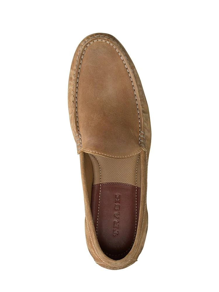 FEATURES:Waxed and burnished Italian suedeTubular moccasin construction with handstitched detail  Leather liningFoam-cushioned footbed with leather-covered insoleStacked leather heel with half rubber topliftBuffed leather outsole with rubber inset for flexibility