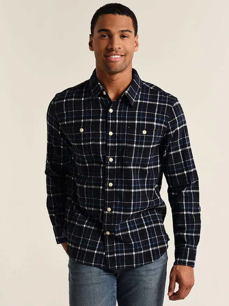 FEATURES:Button down placket Two chest pockets with button closures Long sleeve Button cuffs 100% cotton Machine wash Styled with J Brand jeans Style # JB000171 and Trask sneakers Style # 30-1338. Model is wearing size medium shirt and size 32 jeans.