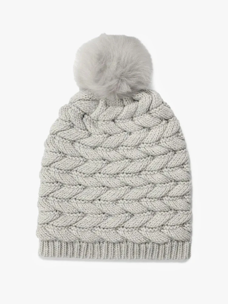 FEATURES:Heathered TextureGenuine Sheepskin Pom-PomLuxurious Wool Blend70% Acrylic, 30% Wool